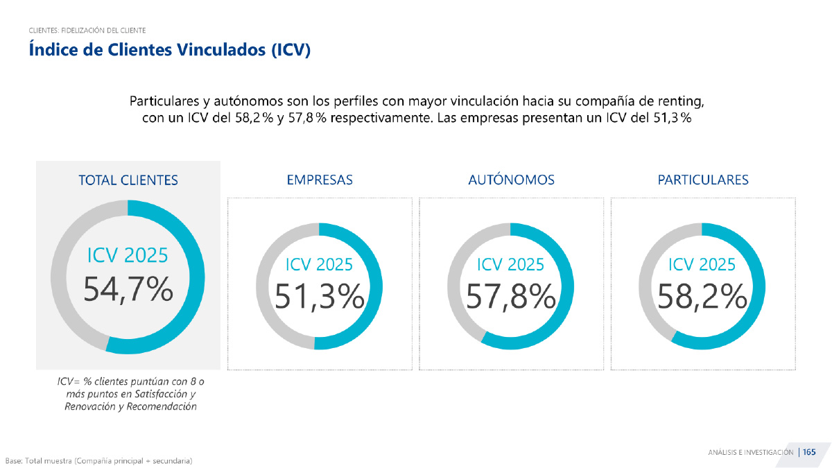 - El exigente Índice de Clientes Vinculados (ICV) del renting alcanza el 54,7%, basado en los