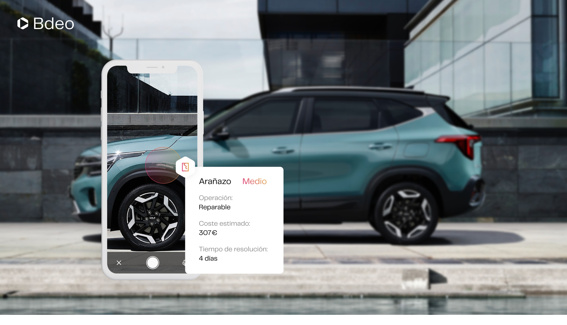 Con la Inteligencia Visual de Bdeo, estas inspecciones son mucho más rápidas y conllevan menos recursos. Se basan en la toma de imágenes o videos desde un dispositivo móvil, que puede ser el del propio usuario del vehículo. La IV analizan el estado del auto en cuestión de un instante, detectando incluso los daños externos más pequeños y ofreciendo un informe detallado sobre las piezas dañadas, la gravedad de los daños, recomendaciones de triaje e incluso una estimación del coste de reparación.