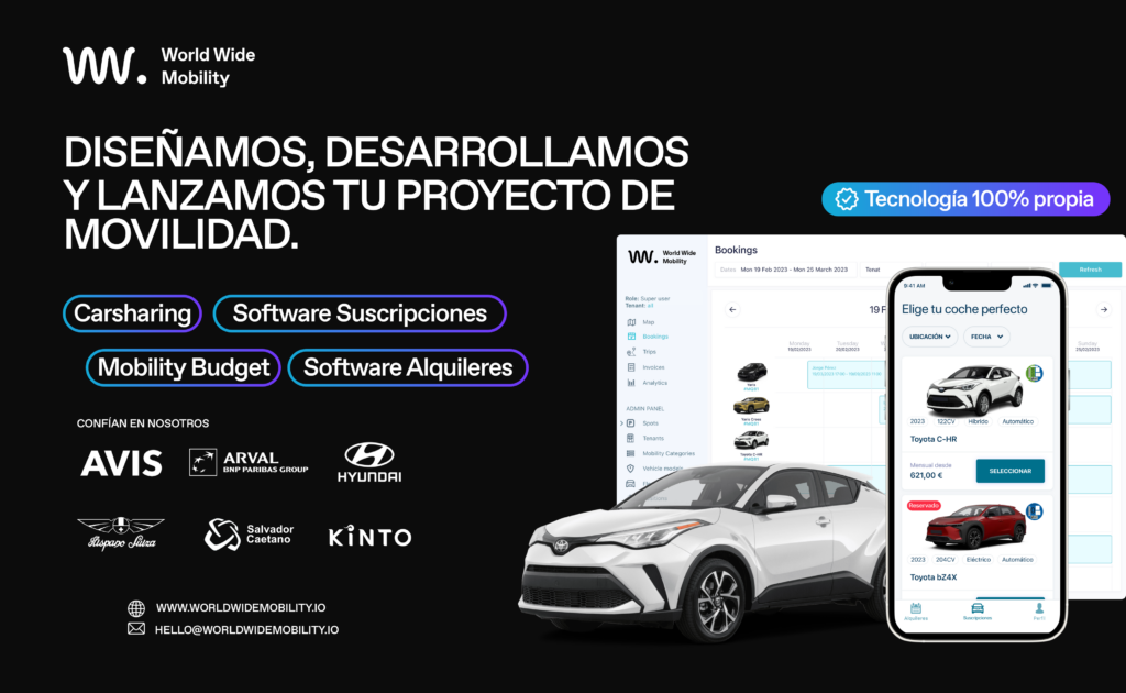 World Wide Mobility nace para dar respuesta a la transformación del sector de la movilidad. La compañía desarrolla una plataforma tecnológica B2B, modular y escalable, que permite diseñar, lanzar y operar de forma integrada, segura y eficiente distintos modelos de negocio de movilidad. La plataforma cubre todo el ciclo operativo de servicios como carsharing, software de suscripción de vehículos, digitalización integral de rent a car y soluciones de mobility budget, adaptándose a las necesidades de los distintos actores del ecosistema, desde operadores y compañías de movilidad hasta fabricantes (OEM’s).