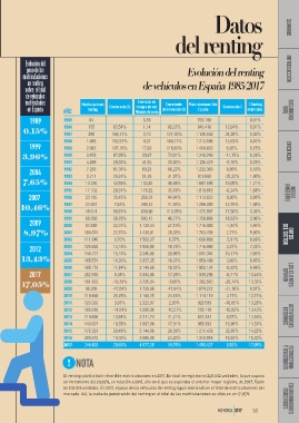 en renting de vehículos en España 1985/2017