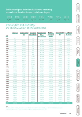 Evolución del peso de las matriculaciones en renting SUMARIO