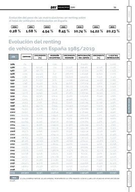 Nota En 2019, el renting matriculó 302.900 unidades, incrementando sus cifras respecto a 2018 un 13,14% y con un peso en el mercado total del COLABORADORES