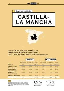 El parque de vehículos en renting en Castilla-La Mancha 1,58% 1,84%