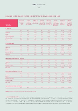 RESUMEN DE CONSUMOS MIXTOS MEDIOS POR CLASE DE VEHÍCULO 2012–2020