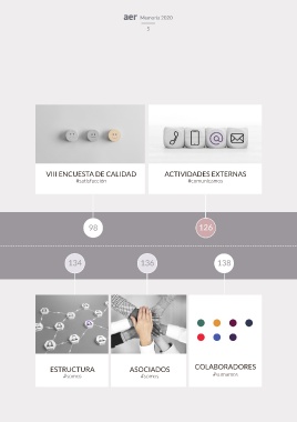 Memoria 2020 5 VIII ENCUESTA DE CALIDAD ACTIVIDADES EXTERNAS #satisfacción #comunicamos 98 126 134 136 138 ESTRUCTURA ASOCIADOS COLABORADORES #somos #somos #sumamos