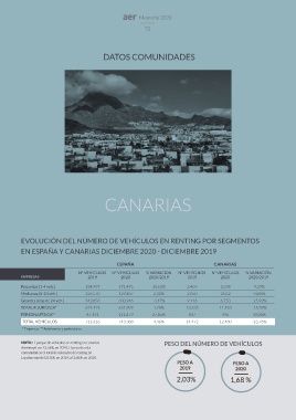 NOTA: El parque de vehículos en renting en Canarias PESO DEL NÚMERO DE VEHÍCULOS