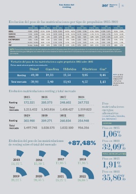 Evolución del peso de las matriculaciones por tipo de propulsión 2015-2022