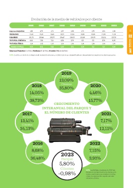 NOTA: En 2015, un cliente de renting tenía de media 8,05 vehículos y, en 2023, 3,53, lo que está justificado por el importante incremento de los clientes pequeños.