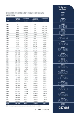 Evolución del renting de vehículos en España 1985