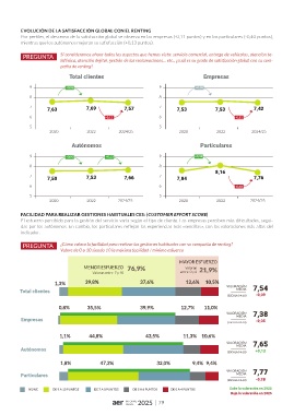 Por perfiles, el descenso de la satisfacción global se observa en las empresas (-0,11 puntos) y en los particulares (-0,40 puntos),